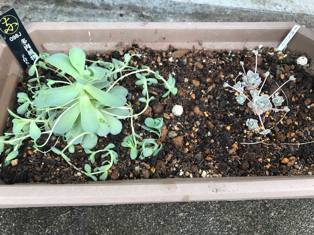 昨日ホムセンでヒョロっこい子持ち蓮華を連れて帰ってきたんだけと、元気になるかなぁ……