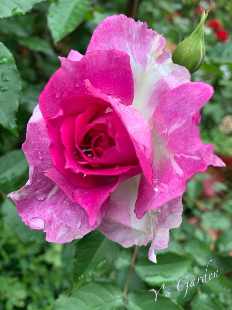 千夜一夜、王様に物語を語った賢い姫のお名前。花びらの先がとがってヒラヒラ開き、ピンクが濃く個性的です。目立つので庭のアクセントになってます。