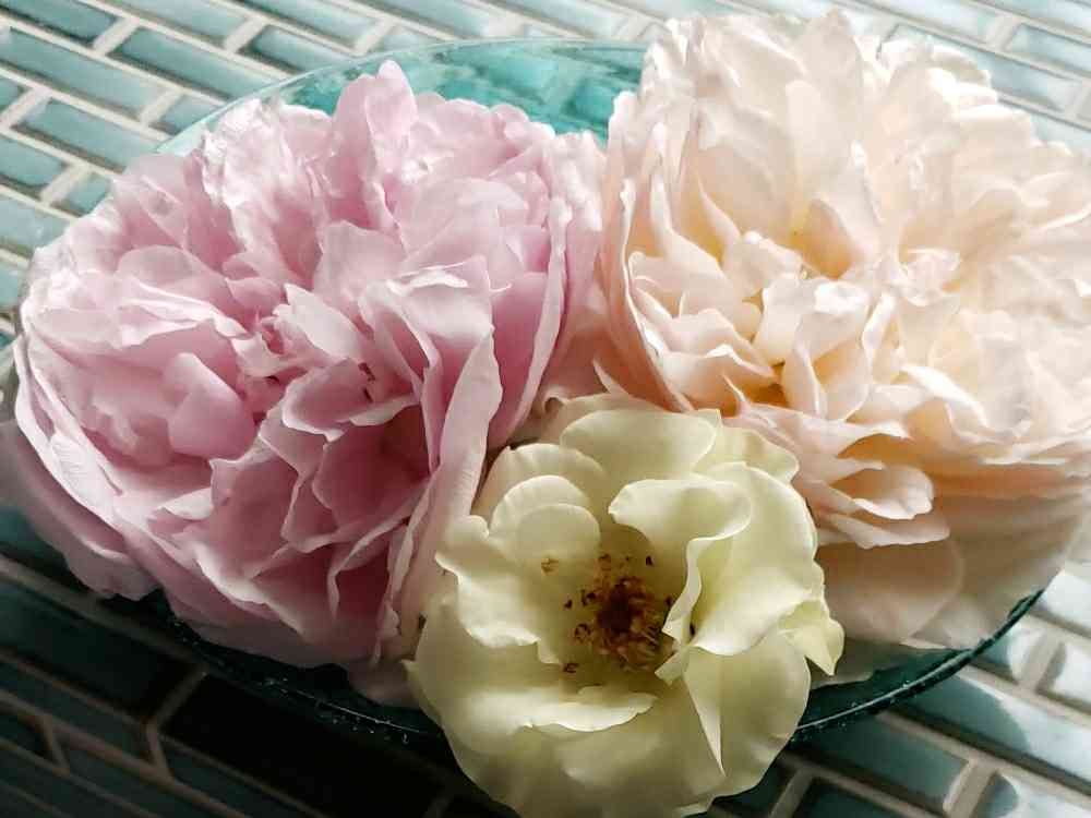 昨夜は雨の予報。ハラハラ散ってしまいそうな花をキッチンに飾りました。