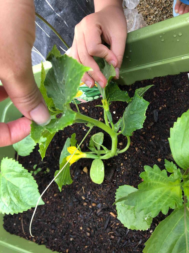 花の下の 赤ちゃんキュウリがかわゆい♡