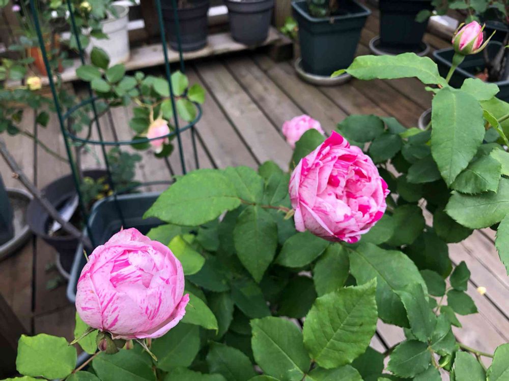 コロコロの玉のようなバラ、赤と白の混ざり具合もちょうどいい感じに咲きました^_^