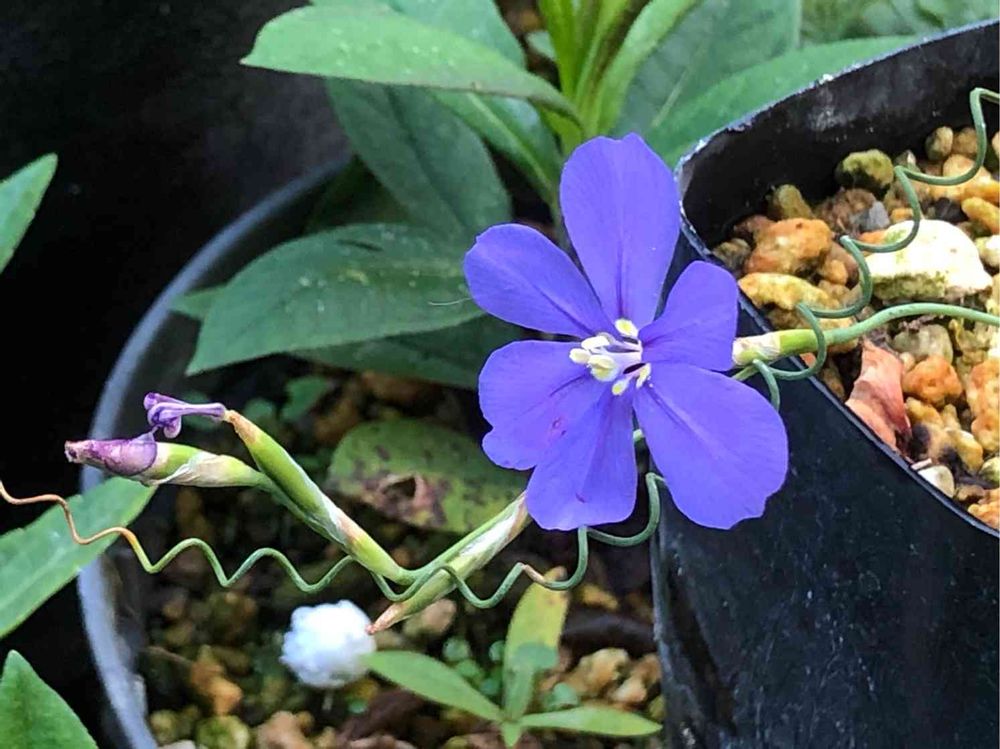 クルクル葉っぱが特徴的なモレア(モラエア)ヘレイです。これも一日花で、しかも午後にならないと開いてくれません😆。