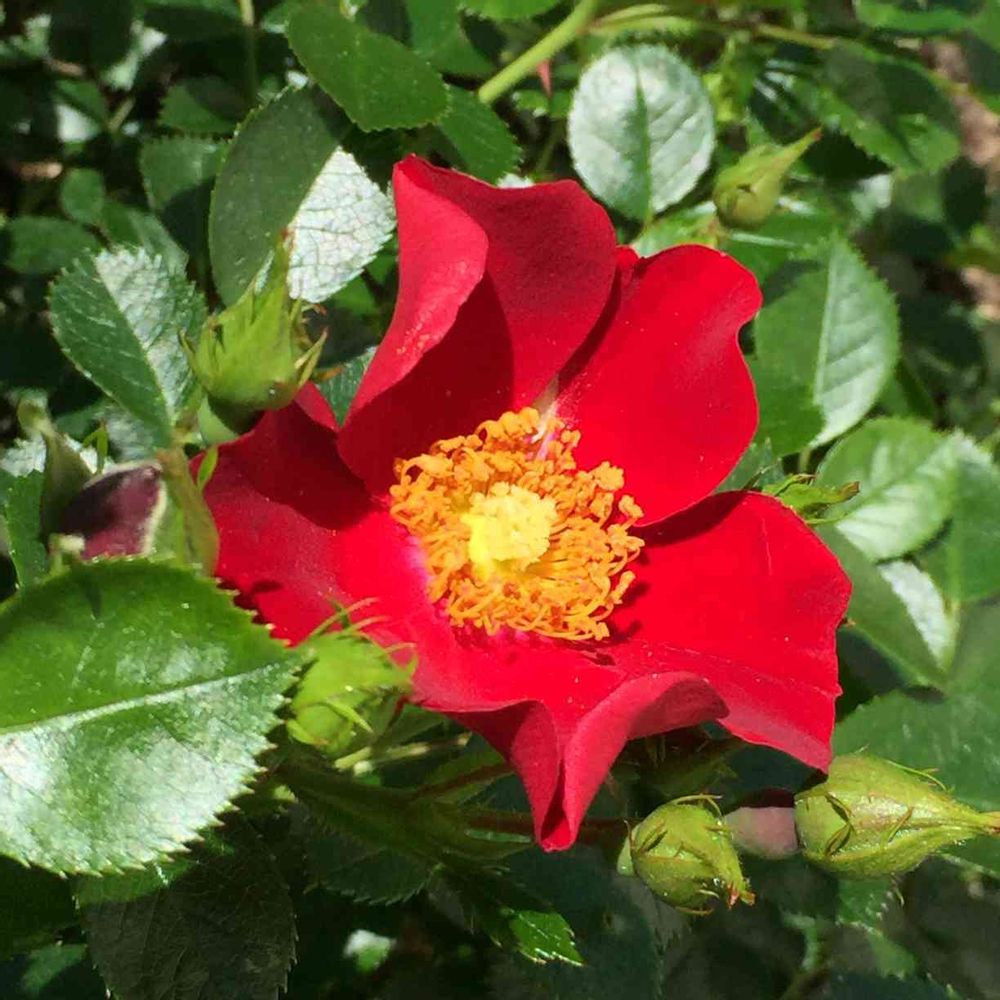 こういう一重のミニ薔薇、なかなか見ないですよね。なるほど椿にも見えますね!