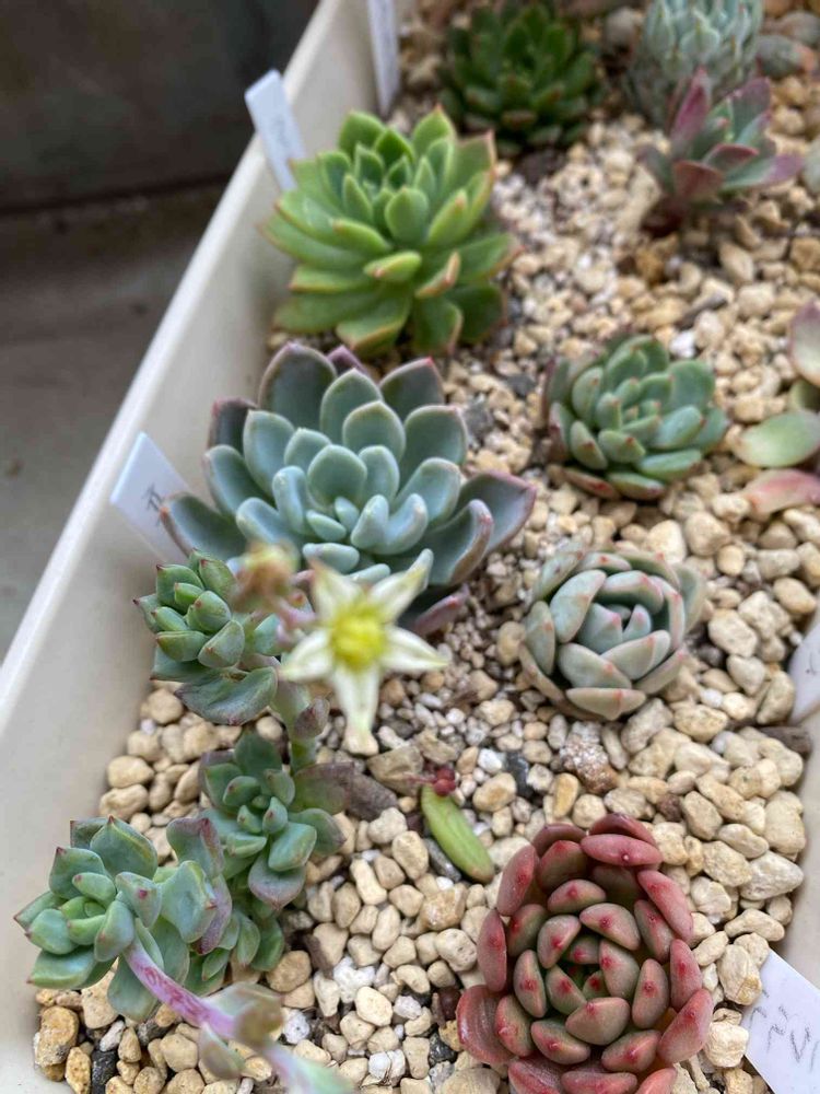 可愛い多肉さんをひとつの鉢に並べて見ました。お水をあげたら葉が大きくなり初心者の私はびっくり👀
