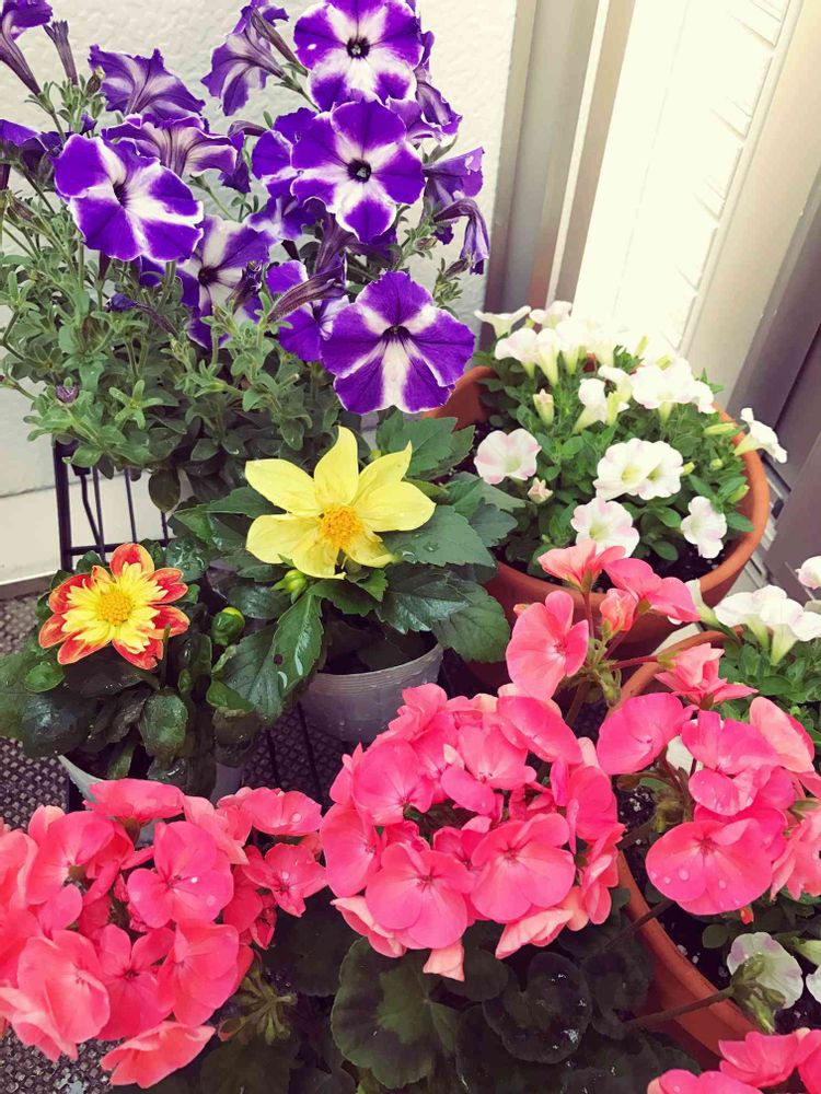 お花達はとっても狭そうにお日様の取り合いです😵💦