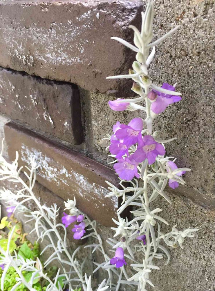 白っぽいアクセントにと端っこの方に植えてたんですけど、まさか紫の花が咲くなんて(o^^o)これから楽しみ倍増です✌️
