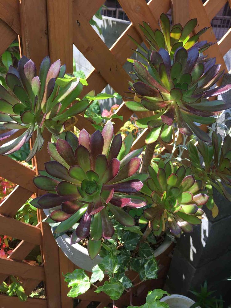 黒法師👈クロホウシと呼んでいたら本当はサンシモンって言うんですね😅茎の先でロゼット状に展開する葉は、お花のようです。なかなか黒くならないのはナゼ?