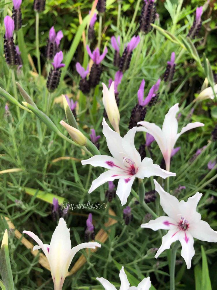 春咲きグラジオラス・ピュアベールとフレンチラベンダーの爽やかなコラボです💕