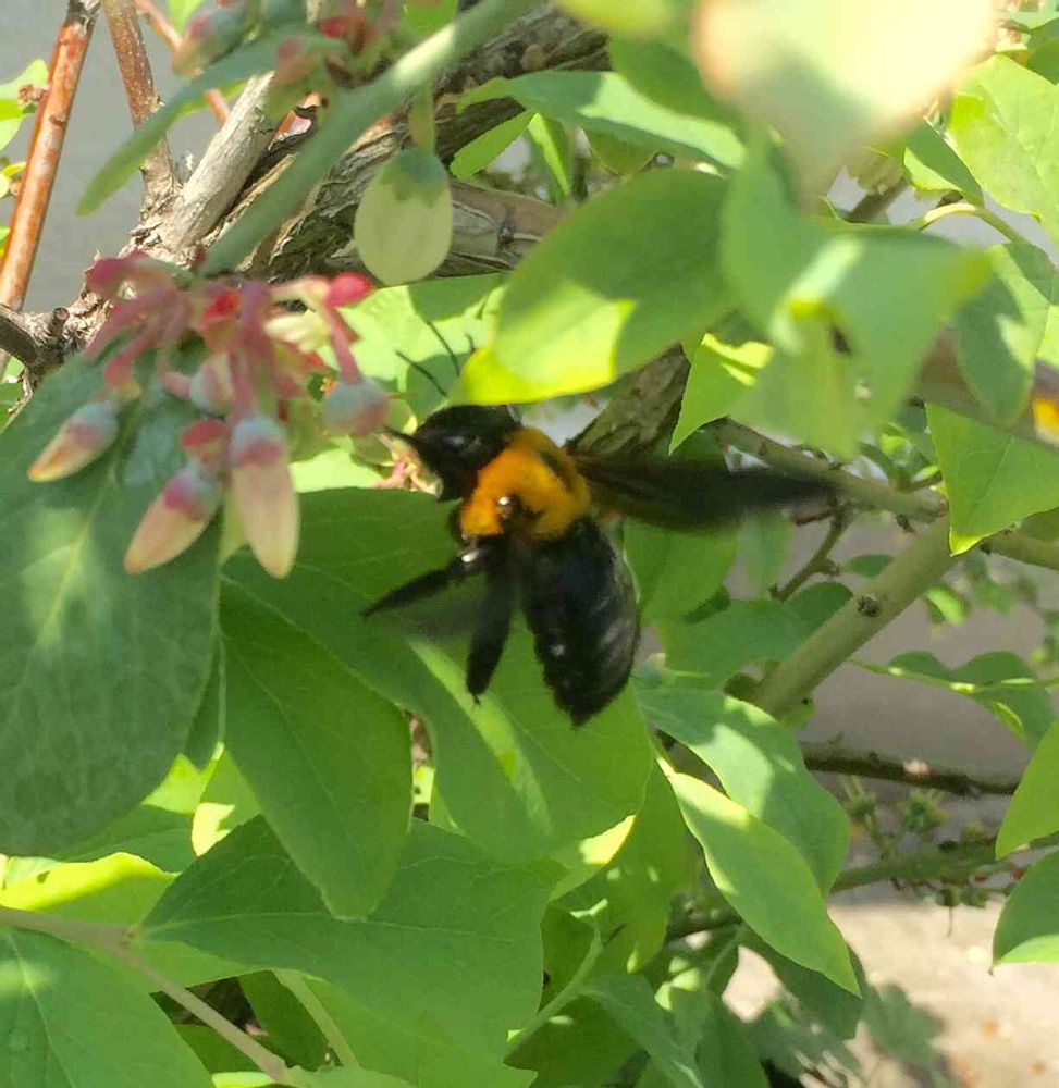 クマバチ君はでっかい身体でブルーベリーの蜜を上手く吸えるのか?