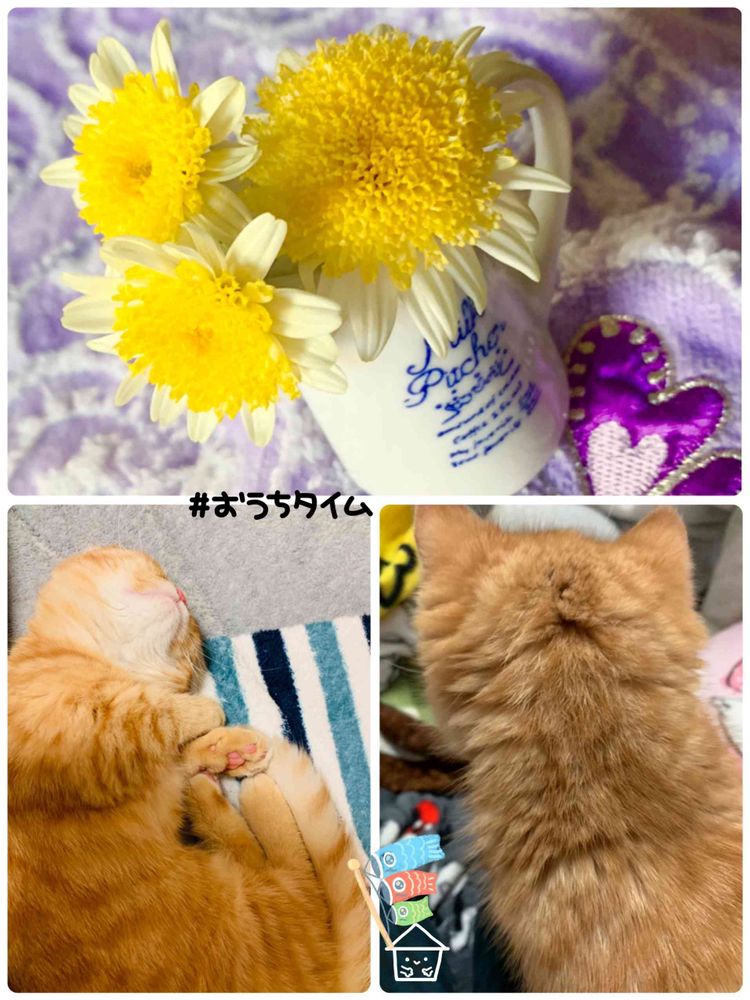 かわいいお花とニャンちゃん💕うちにも茶虎の😺が居ます。お天気も悪いので花の世話もせず。一緒ににゃんことおうちでゆっくりしています。