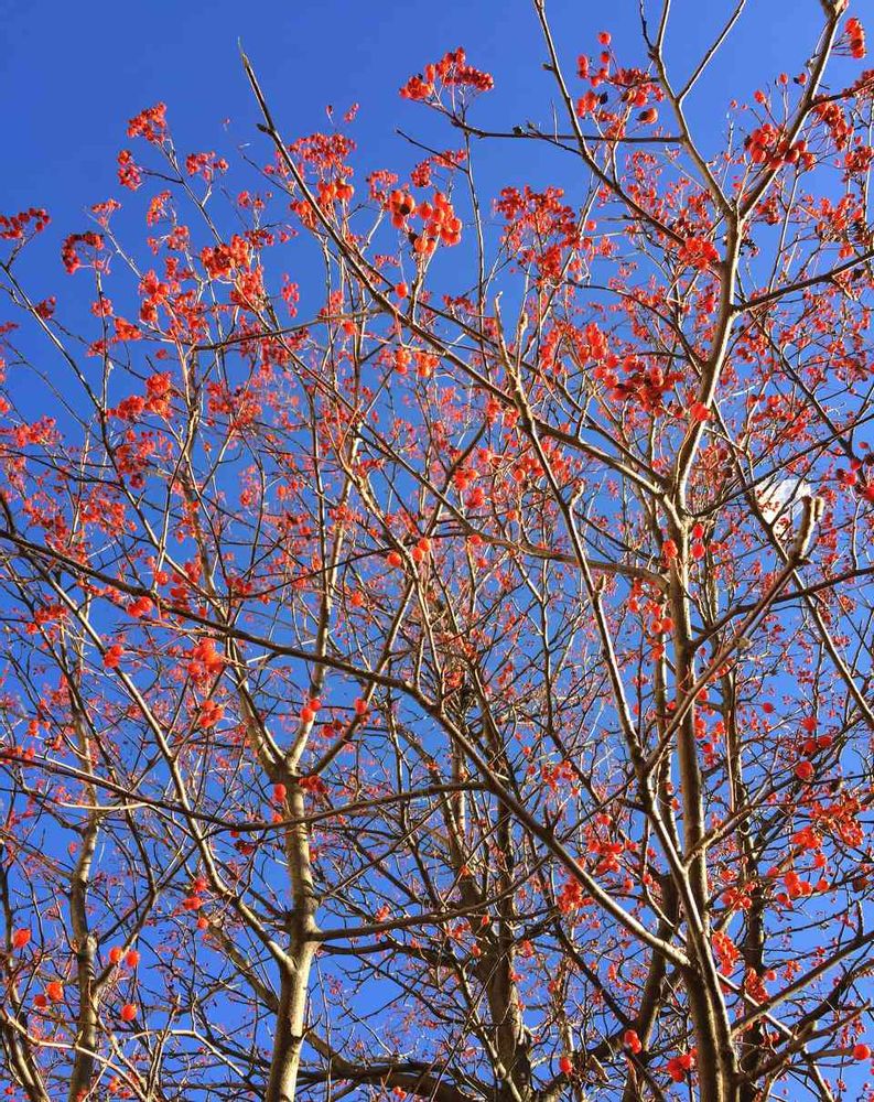 天気が良く、赤い実の木と空がキレイで〜