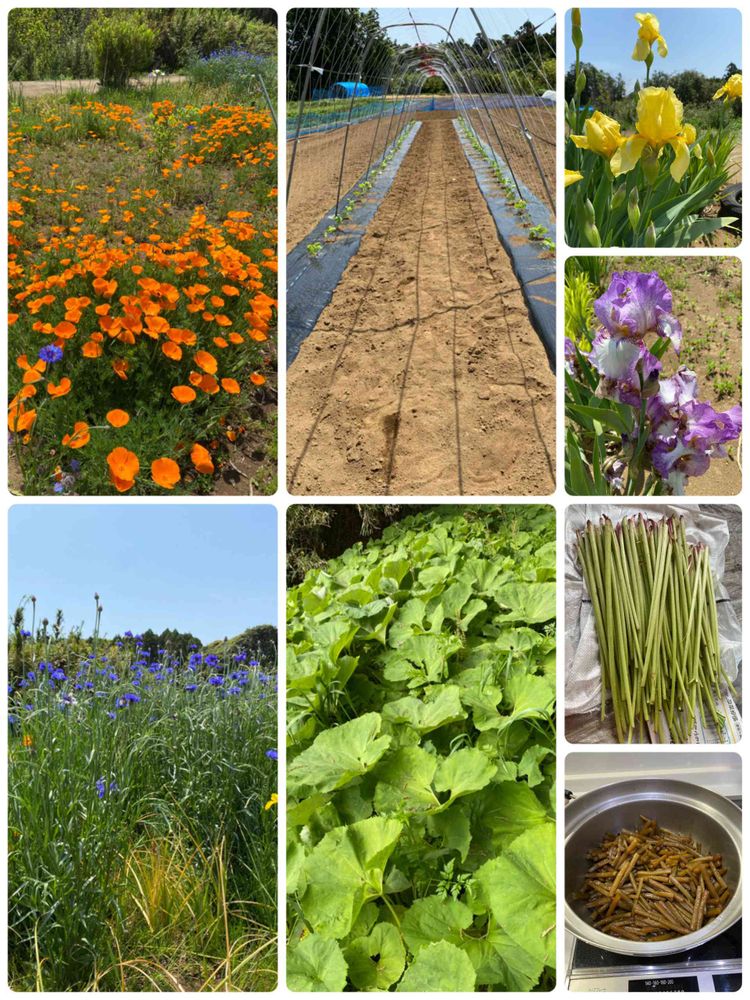 最初が一番柔らかいから、たくさん煮て冷凍しておきます。毎日畑で草取りしていると、コロナ忘れますね😆