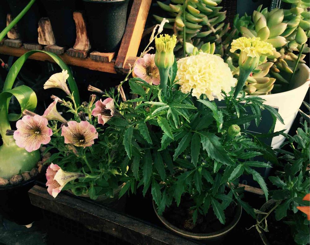バルコニー/ベランダ,マリーゴールド バニラ,ペチュニア 苺みるくの投稿画像