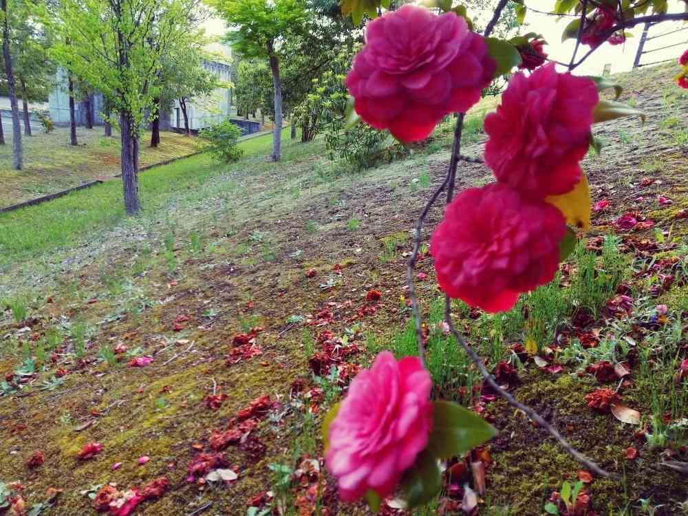 散歩途中、県立美術館の裏手に椿がまだ🌼咲き残っていました。(コロナの為休館)👍️🚶♀️☺️