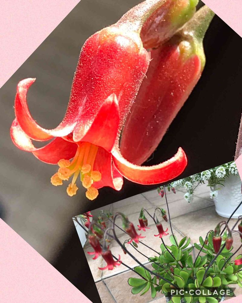 このコチレドン属ゴルビューは、花かんざしとも言うんだね!!2月のドームのらん展で、花芽が付いてるこの子をお連れしてから、やっとやっと咲いたよ!!タコちゃんウインナーだよね🐙かわいい◝(⑅•ᴗ•⑅)◜..°♡