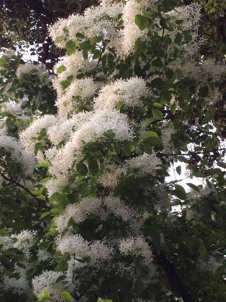高い木です。雪をかぶったような白い花を咲かせていました。