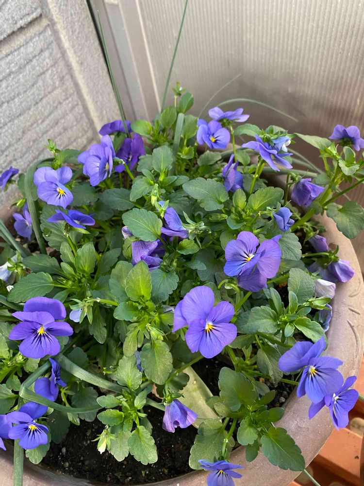 去年ビオラの種子落ち着きました✨水やるだけで大きくなって青い花咲いてます💖