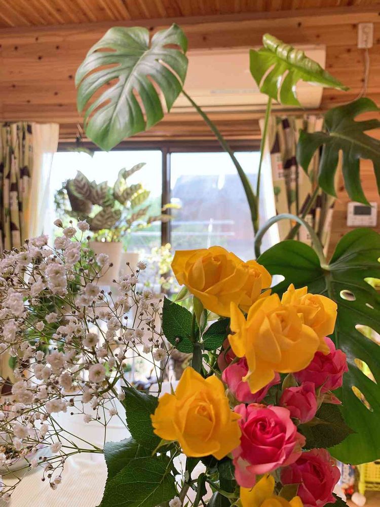ヨウコさんのバラ,モンステラ,かすみ草の投稿画像