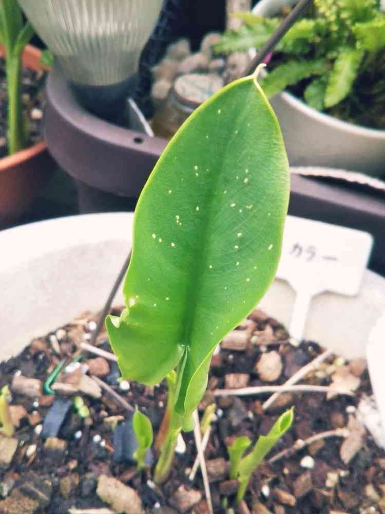 地震で起こされるのは嫌だけど、カラーがやっと目覚めた模様。今年も黄色い花見られるかなー