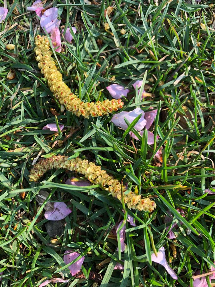 雄花でしょうか。コナラやクヌギの雄花も🐛虫のように落ちているので、同じようにビックリしますヨ!🖐️😅
