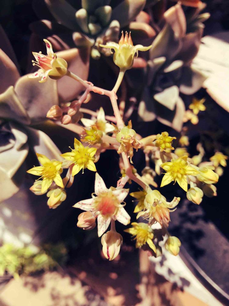 多肉の花2種類絡まって花束みたい(^O^)