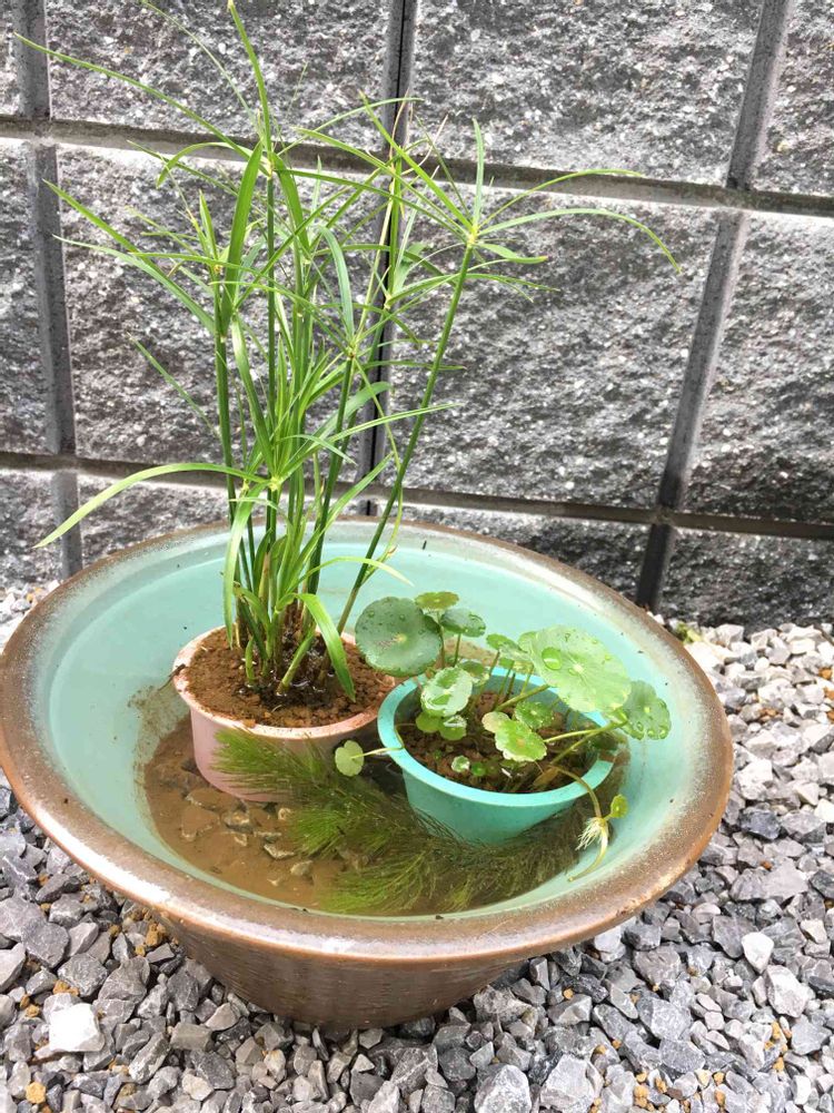 メダカを飼うには狭そうだったので、睡蓮を取り出してお引越しさせました。
