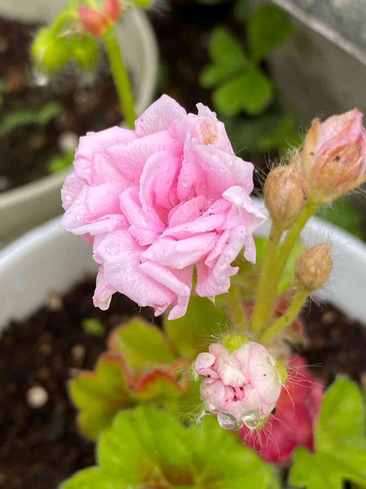 バラ咲きのゼラニウム雨の中咲きました❣️