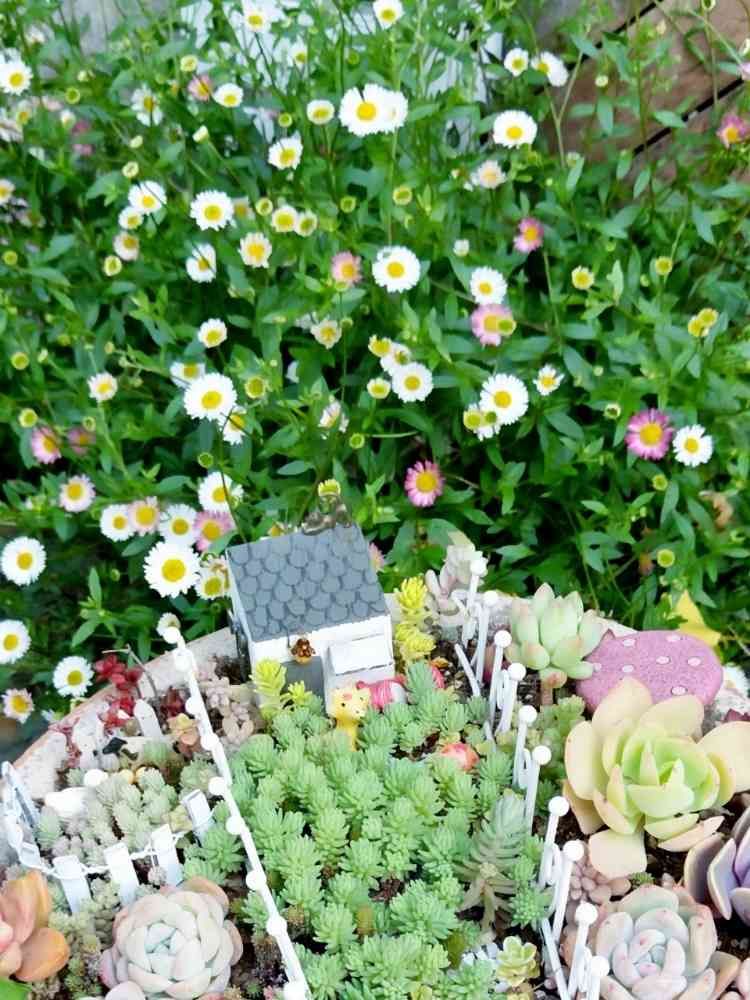 セダムが青々しく、爽やかな五月晴れですね❤️箱庭さんの世界は~(ღ*ˇ ˇ*)。o♡