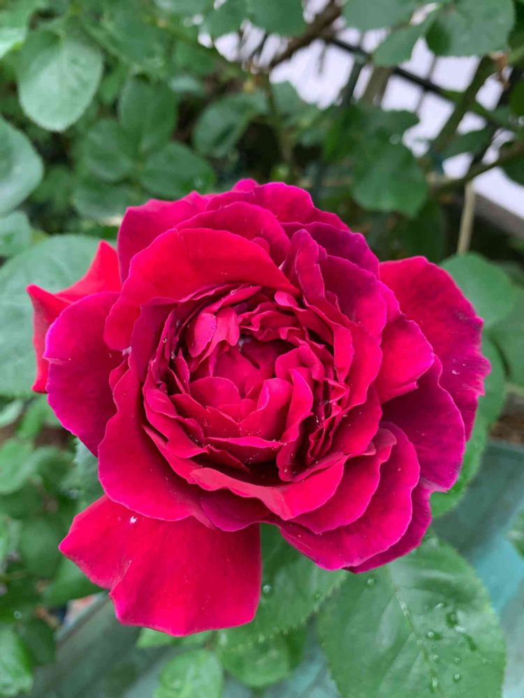 [@id:214564] この子はコリーヌルージュ赤薔薇だよ。新苗から3年目でやっと花弁が増えてきた✨牡丹のように咲く薔薇🌹金蕊が綺麗なんだよね✨