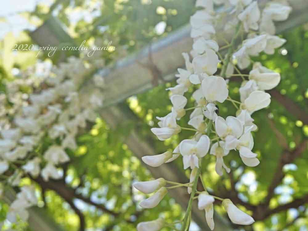 3つ目のフジは白で、香りも強めです♡こちらは、高さを出したかったので、去年棚を作り替えたので、花数少なめでした💧