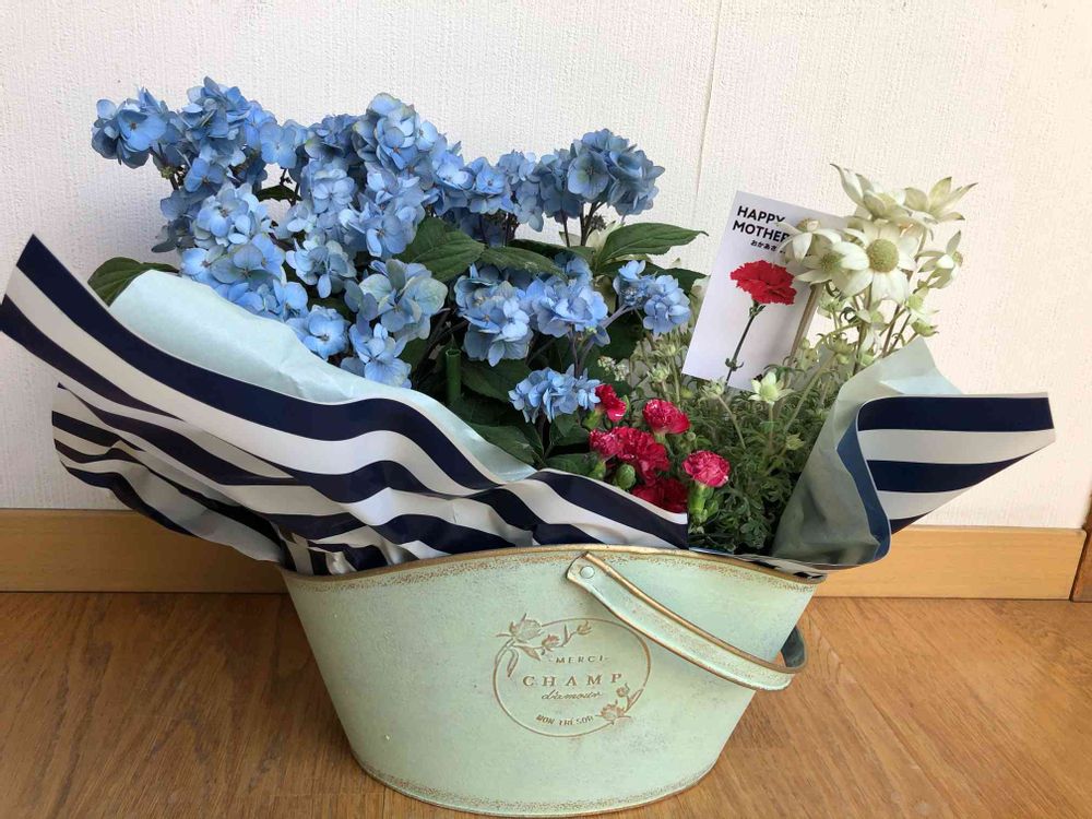 沢山のお花とオシャレな鉢♡素敵なプレゼント🎁ですね〜