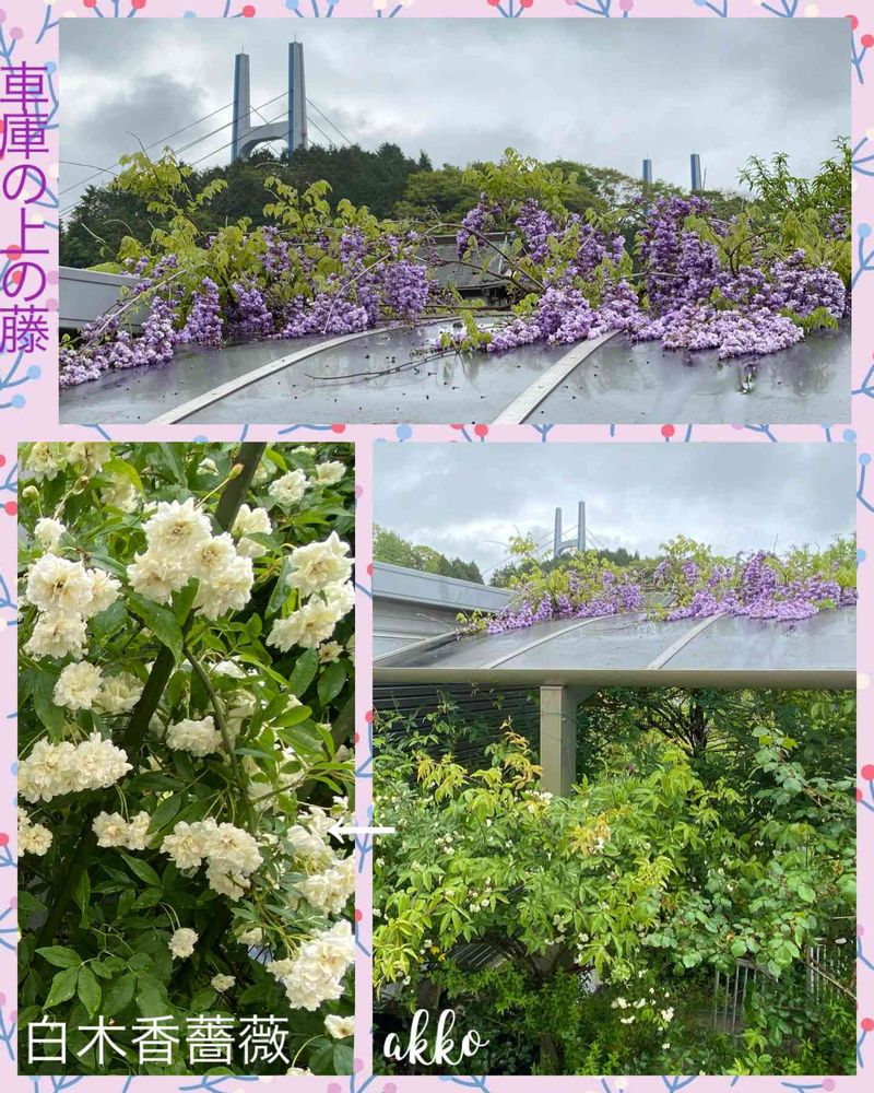 ひみつのアッコちゃんさんの八重黒龍藤(ヤエコクリュウフジ),もっこうばら(白),東名高速道路、足柄ブリッジの投稿画像