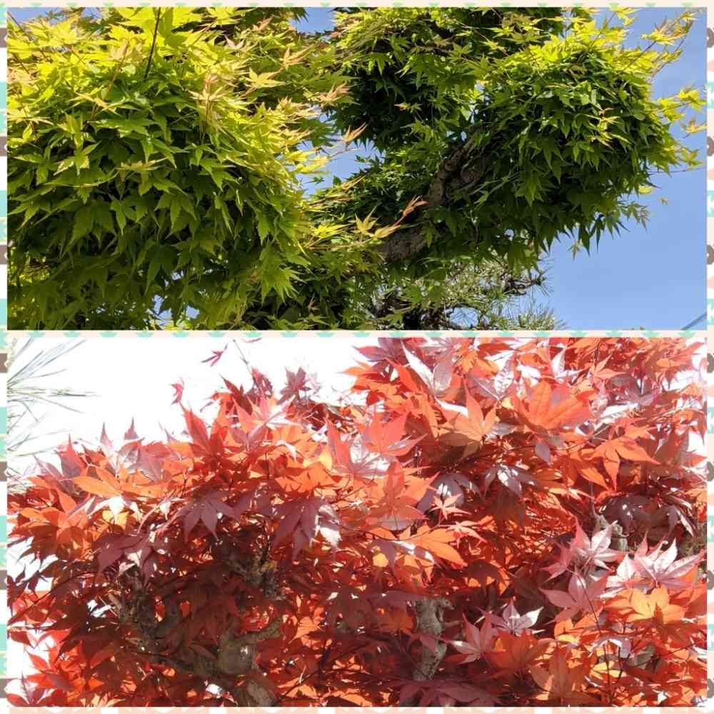 民家の塀越しに聳える❗青紅葉・赤紅葉😍