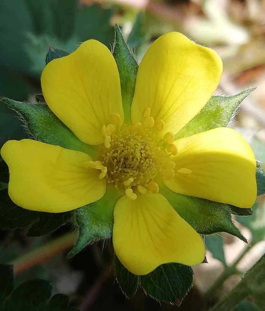 初夏より葉の脇から顔を出すように黄色い花を1つ咲かせる。直径約1.5cmで、花弁は5つ。