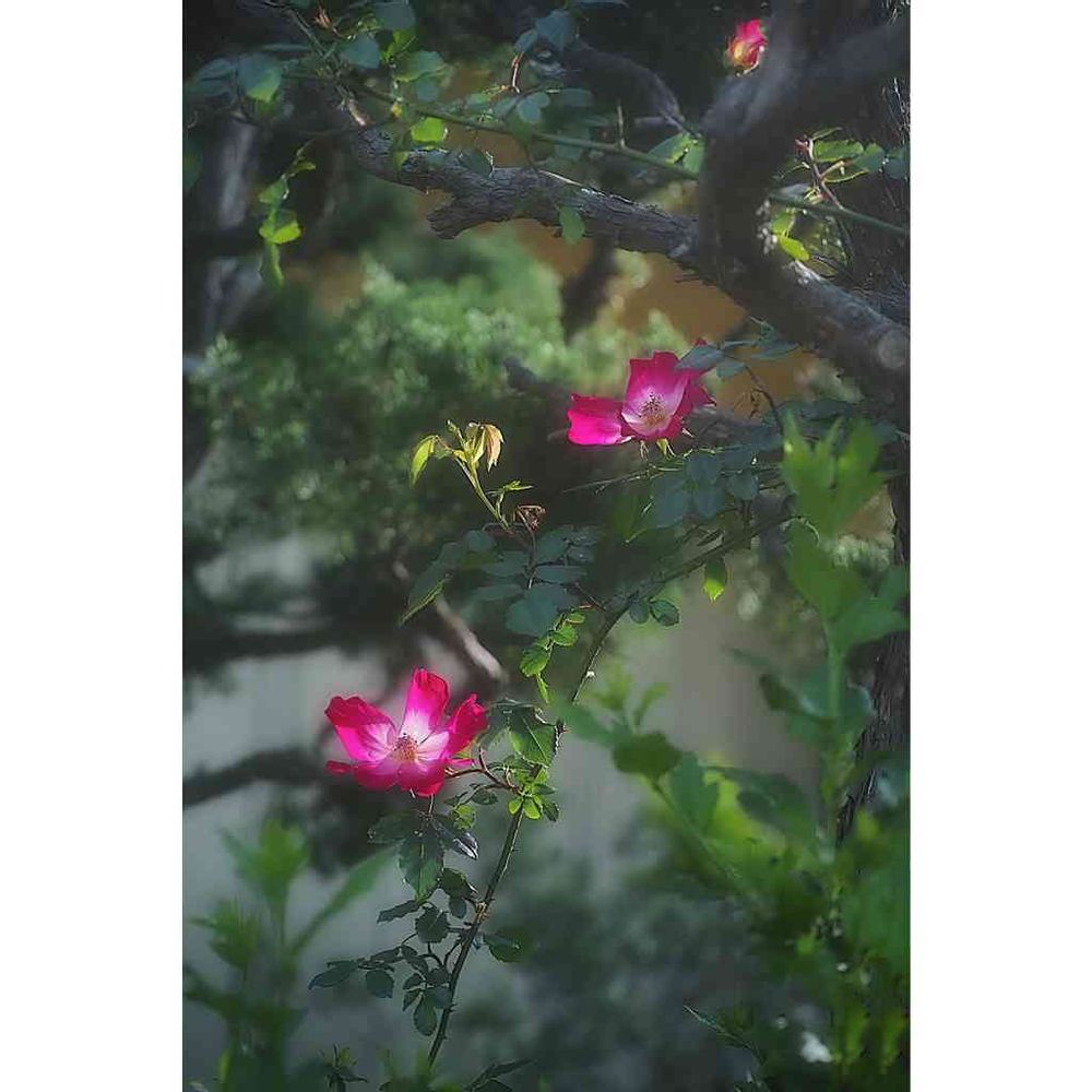 朝陽が差して、薔薇が輝いていたので撮ってみました♩