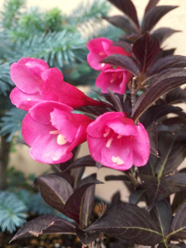 先日、銅葉と蕾だった花の色に引かれて花木センターから連れて来ました(^^)