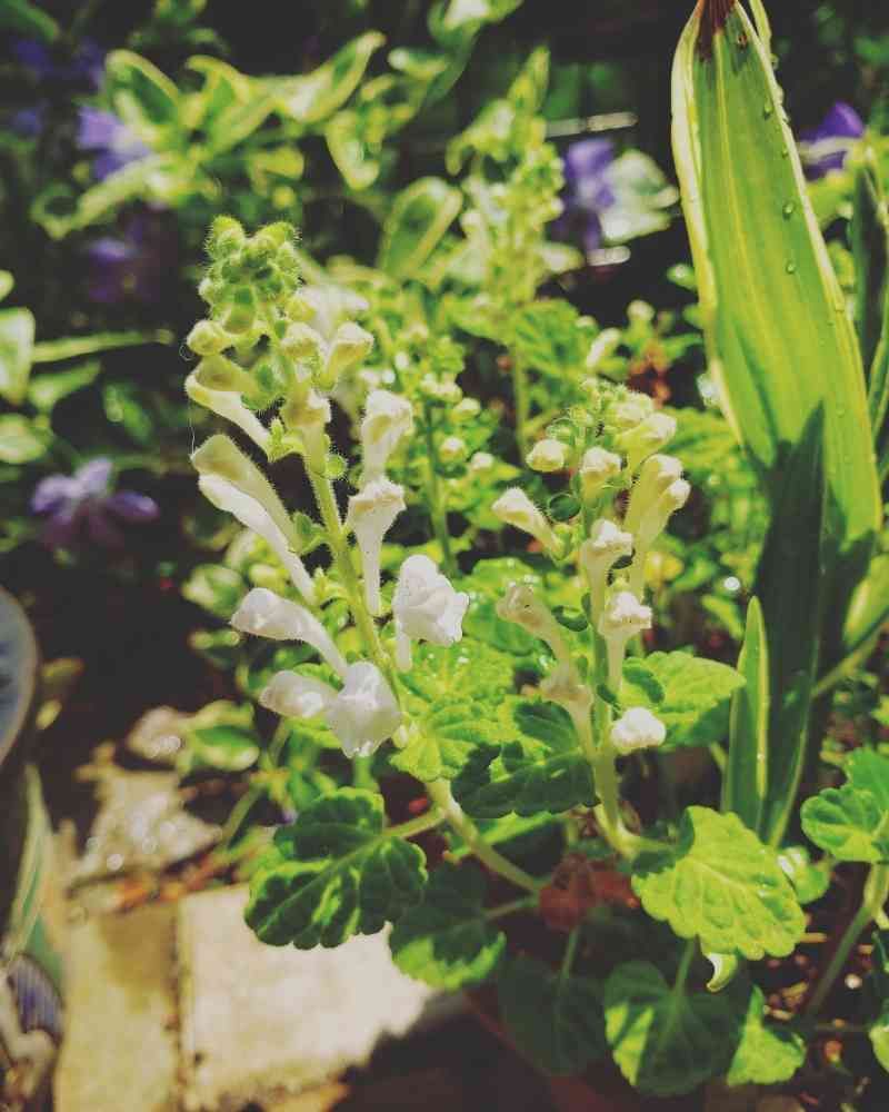 仮の住まいのベランダの花壇に咲いているタツナミソウ。