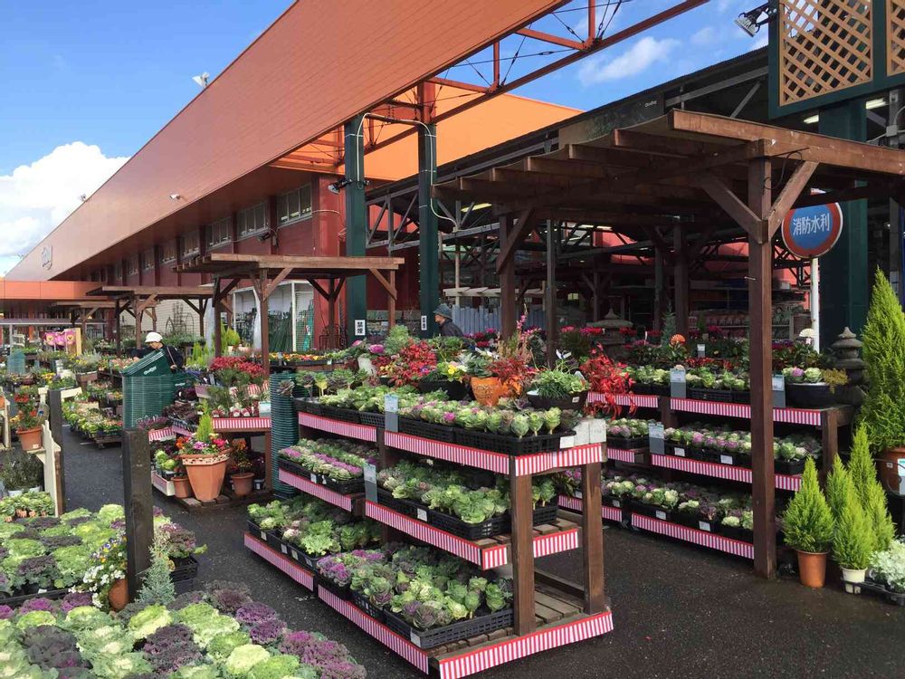 向こうまでずらりと花苗、庭木、そして葉牡丹葉牡丹!(笑)