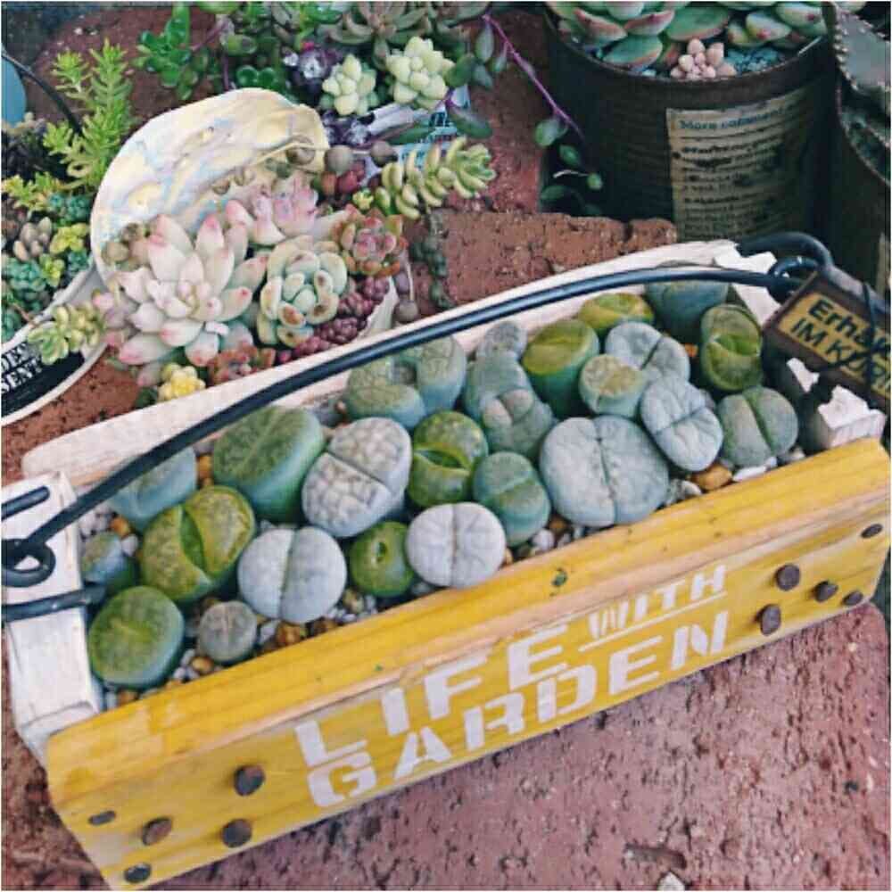 ikuraちゃん作の木箱がとっても可愛いおかげでリトープスも可愛く見えるね~💕ありがとぉ( ⁎ᵕᴗᵕ⁎ )