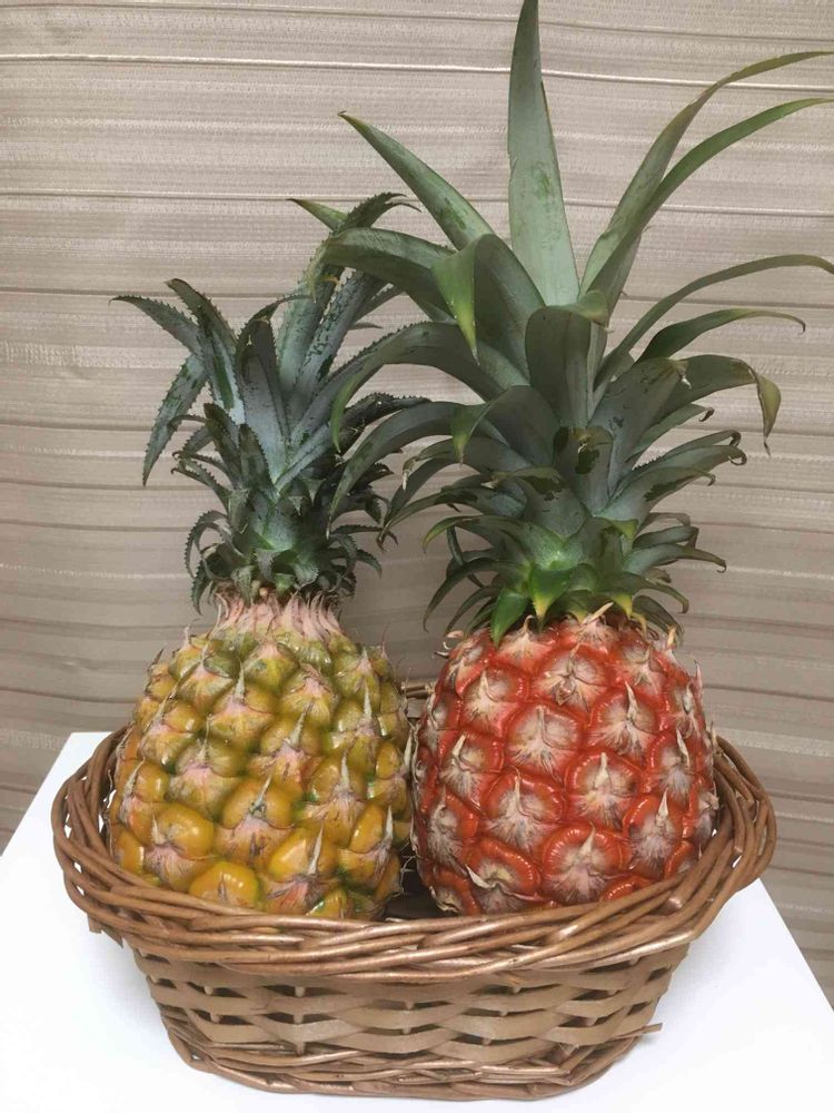 うちにもこの2品種があります。新婚旅行で沖縄へ行った時に買って、例によって手でちぎって食べ、冠芽は他に買い出した果樹共々検疫通してタイへ持ち帰りました。特にピーチパインはタイのパイナップルにはない香りですので、栽培を増やそうと思います。