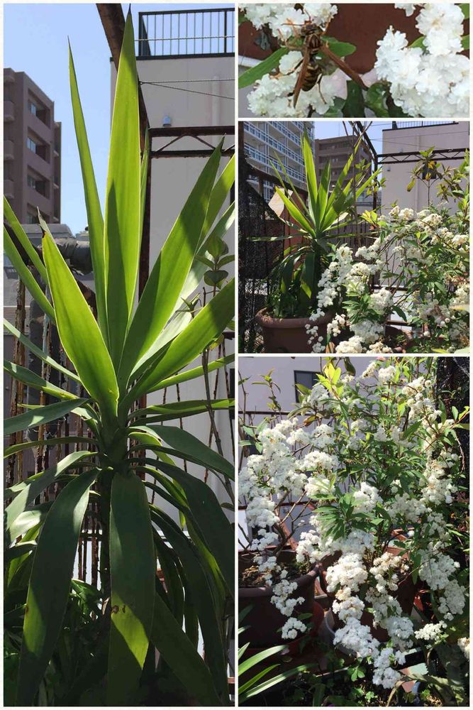 バルコニー/ベランダ,ユッカ,八重咲きコデマリの投稿画像