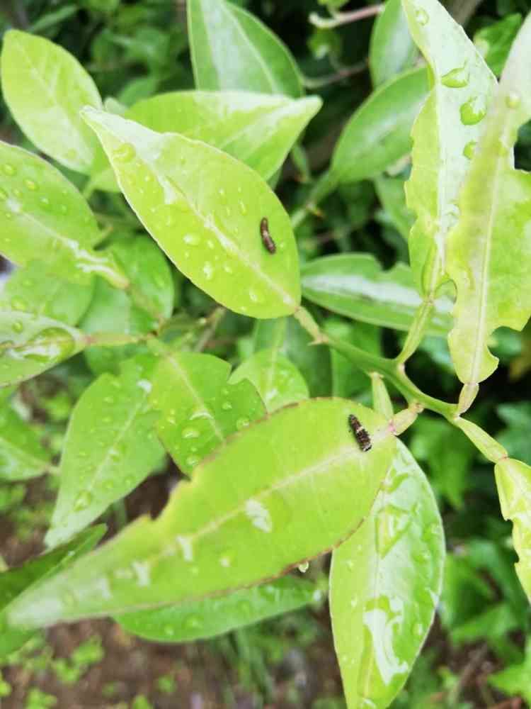 揚羽蝶の幼虫。他の葉にも沢山!!毎年、黄緑色の大きな幼虫までは確認できるものの、蛹は一度も確認できず。今年は最後まで見届けたい🦋そろそろ、防鳥ネット張って、守ってあげなきゃ。