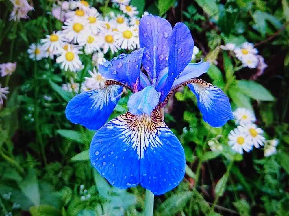 ハナショウブ、カキツバタと見分けがつけにくいですが、花弁の根本に網目の模様があるのがアヤメです。