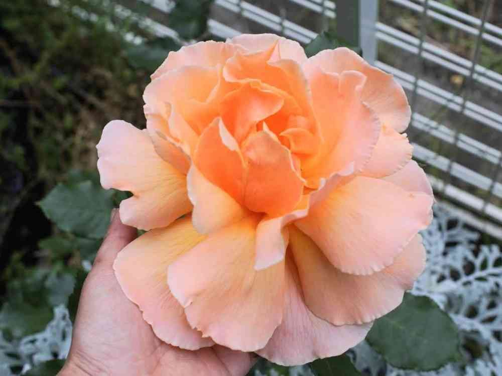 波波ひらひらフリル系のバラちゃんが好みですが、思わぬ巨大輪にびっくりしてます😮暑かったので、蕾から一気に開花してしまいました。