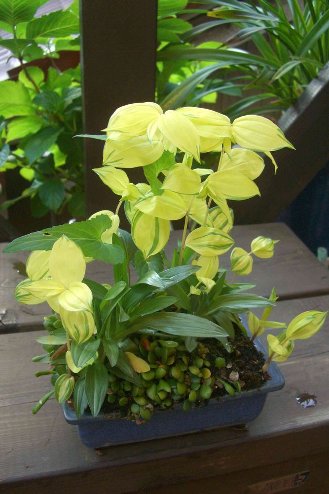 チゴユリの葉が黄緑で、きれいに上がっています。