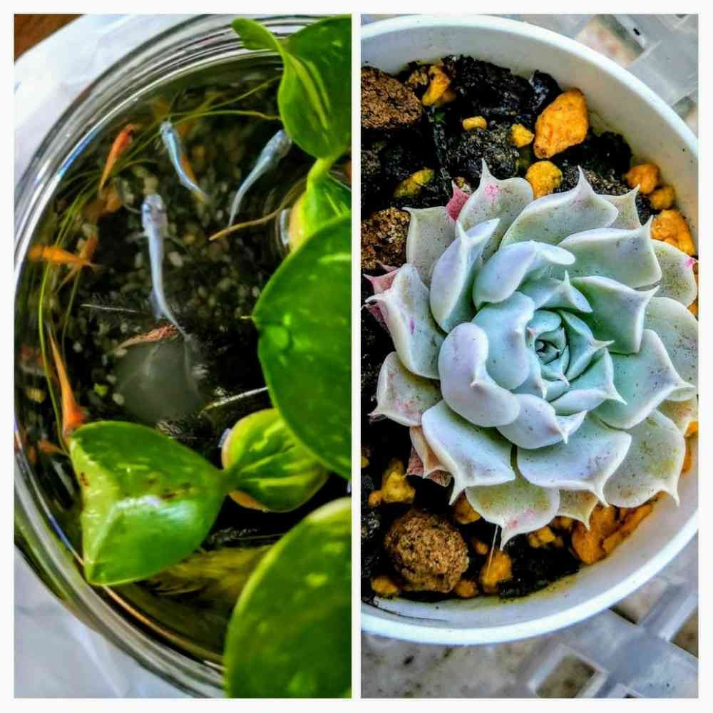 先日お迎えしたメダカさんと、斑入りホテイアオイ🍀。