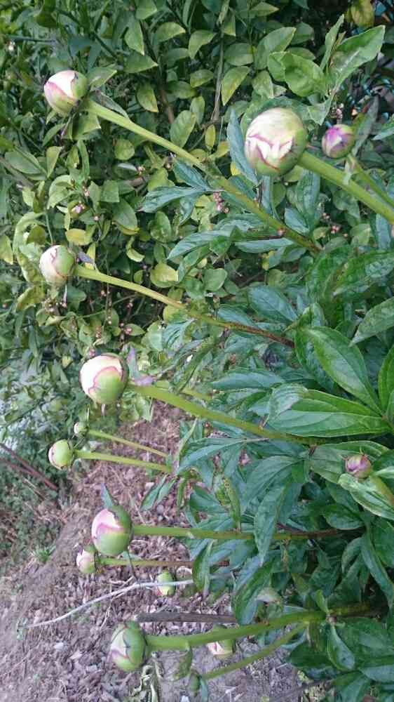 白芍薬のつぼみがみんな太陽の方向に向かって