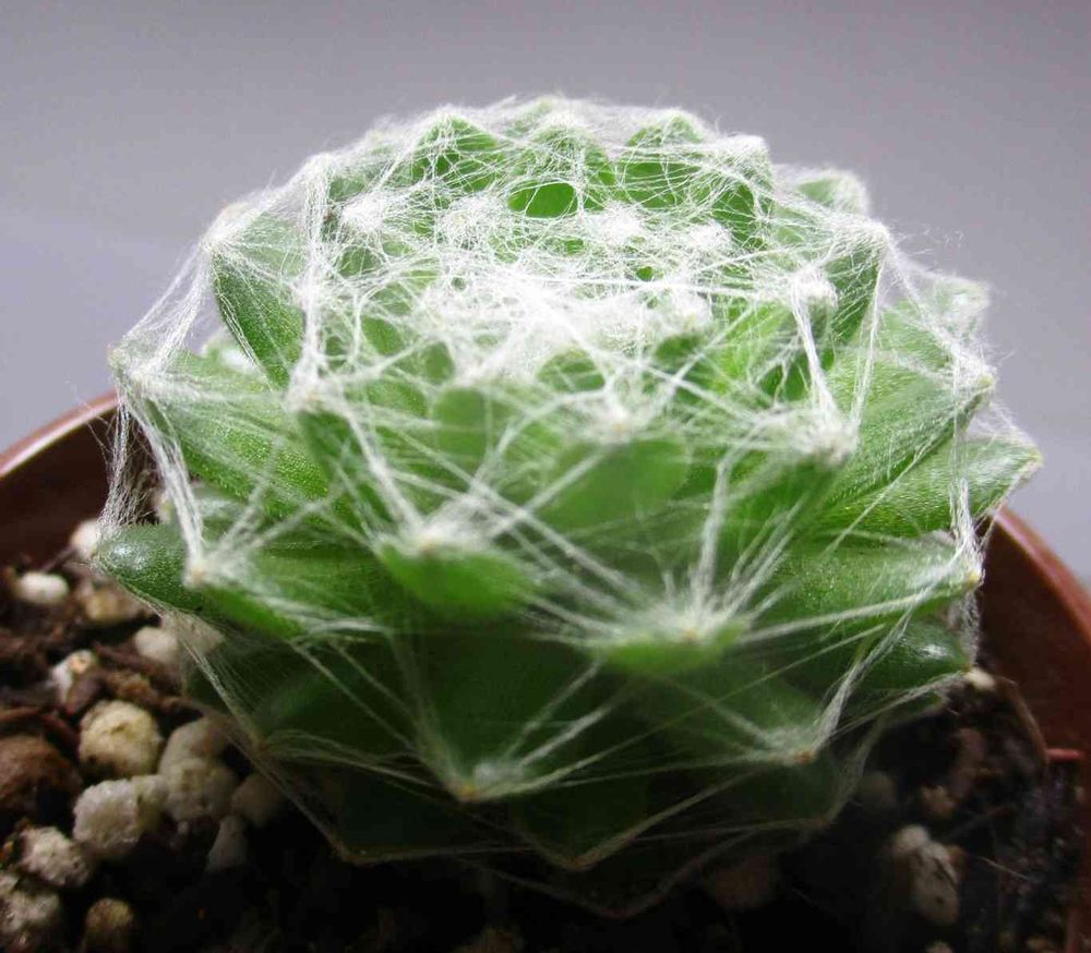 この子、新芽を出すコア部分は、巻絹系すべて雲のような糸の塊になっているが、葉が生長すると共に、糸が伸びて切れないから、全身縛られてる。