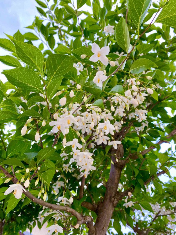 えごの木🌿いつもならゴールデンウィーク、旅行行ってる間にパッと咲いて散るけど、今年は咲き始めからずっと一緒。清楚な白花が青空に似合いました。
