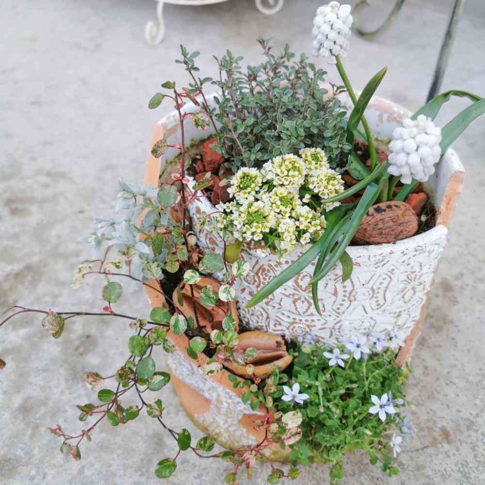 お気に入りのテラコッタ鉢が割れたので😨、ブロークンポットガーデンを作ってみました🌿